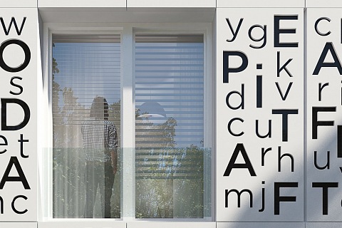 Byt na Andělu má zajímavou fasádu s posuvnými okenicemi